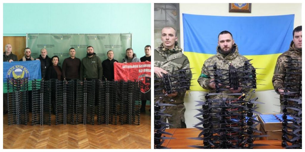 • більше 2000 БПЛА, десятки РЕБ, EcoFlow, Bandera Power, Starlink, турнікетів, буржуйок, конвекторів, телевізорів, моніторів, повербанків, акумуляторних батарей, автомобільних шин, приладів нічного бачення, монокулярів, підзорних труб, пошуково-зенітних прожекторів, бензопил, холодильників, пральних машин, металевих піч, тентів, протигазів, а також сотні бронежилетів, берців, кросівок, аптечок, спальників, комплектів термобілизни, пар налокітників та наколінників, обігрівачів, генераторів, балонів з газовими плитами, ліхтарів, балаклав і касок.