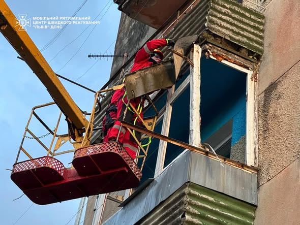 Як повідомили у Мобільному рятувальному центрі швидкого реагування «Львів» ДСНС України, через сильні пориви вітру конструкції балкона були пошкоджені та почали звисати, створюючи реальну загрозу для людей, які проходили поруч.